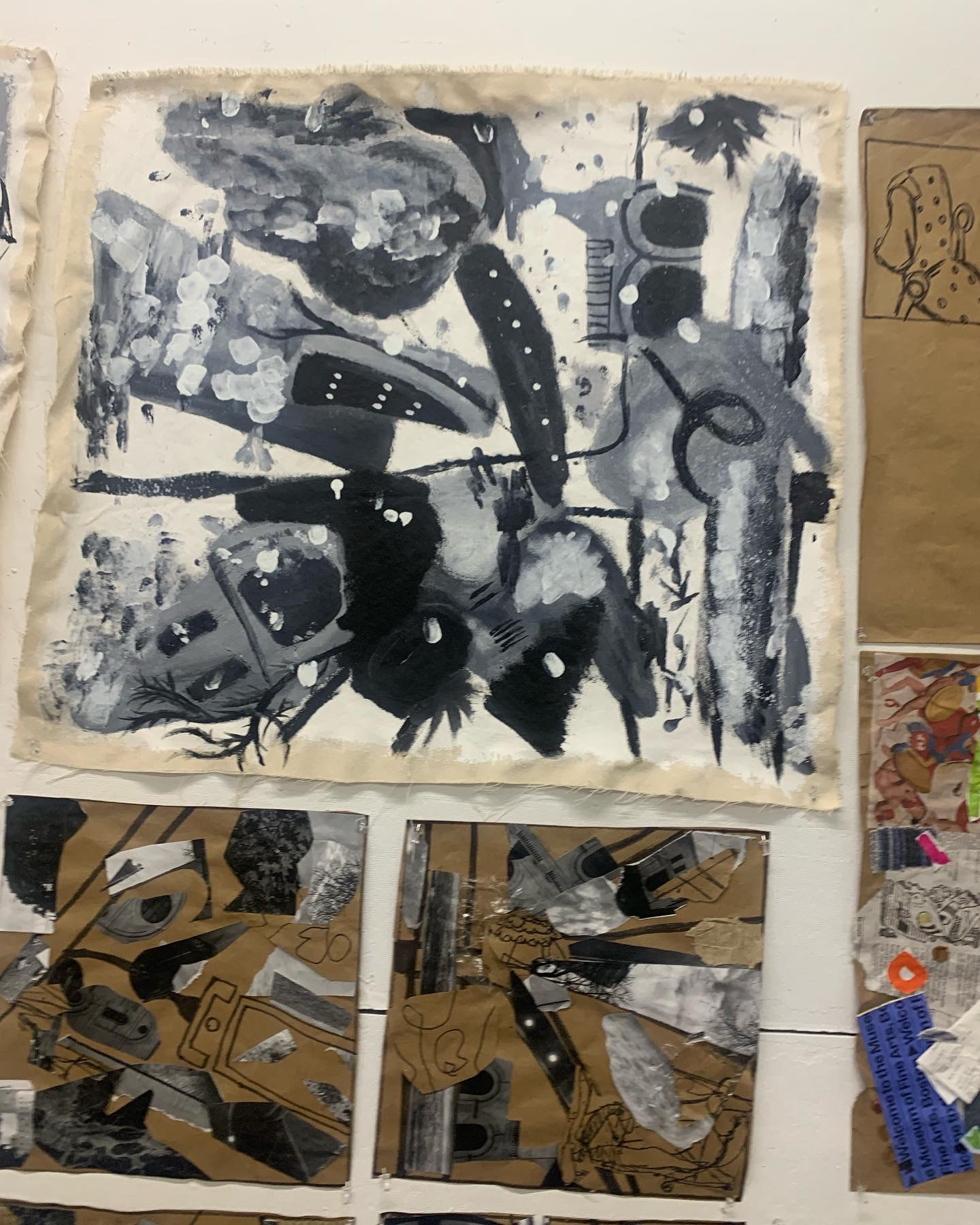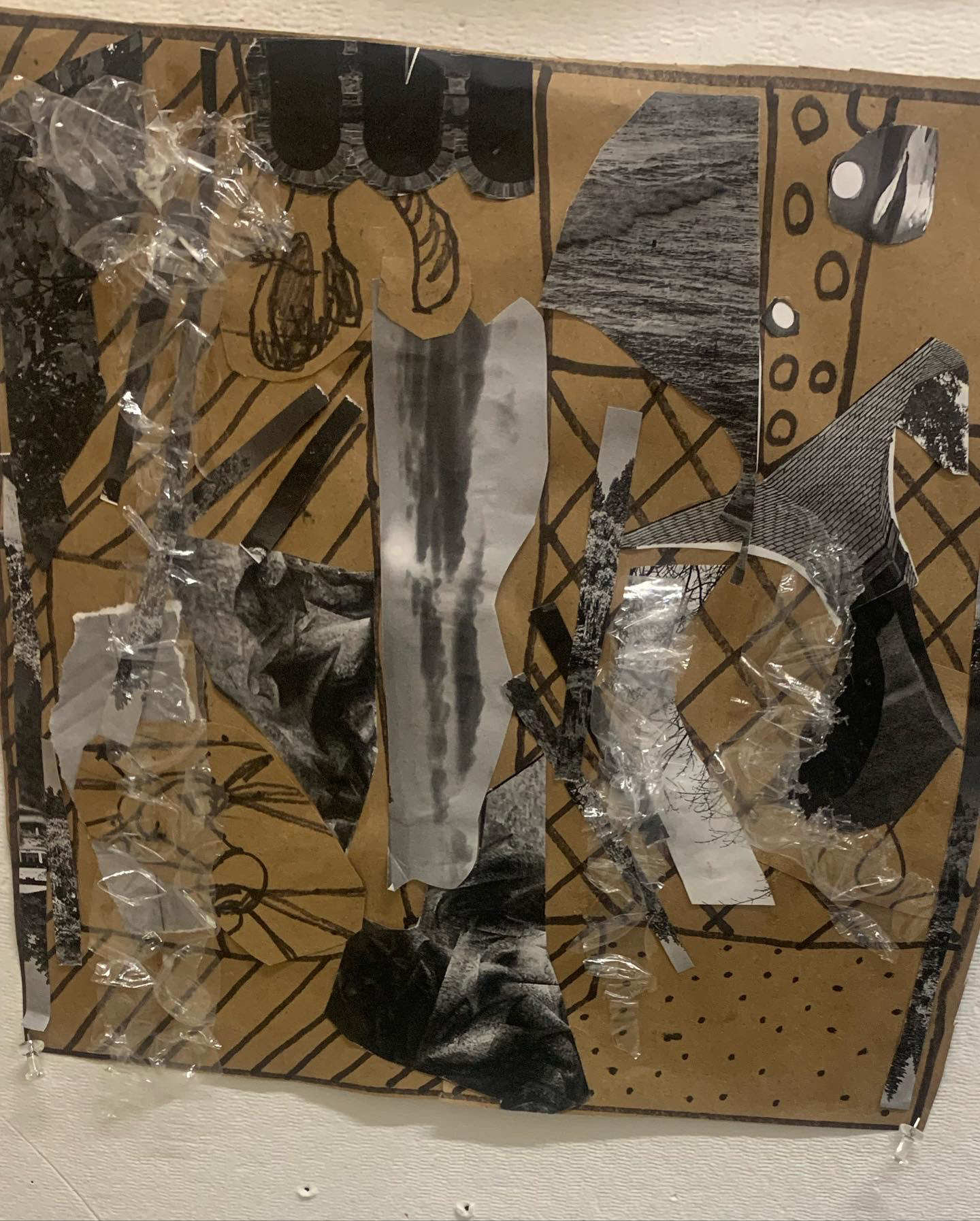 Who Fits Who? | Material: hand sown fabric into jeans, acrylic on paper bag